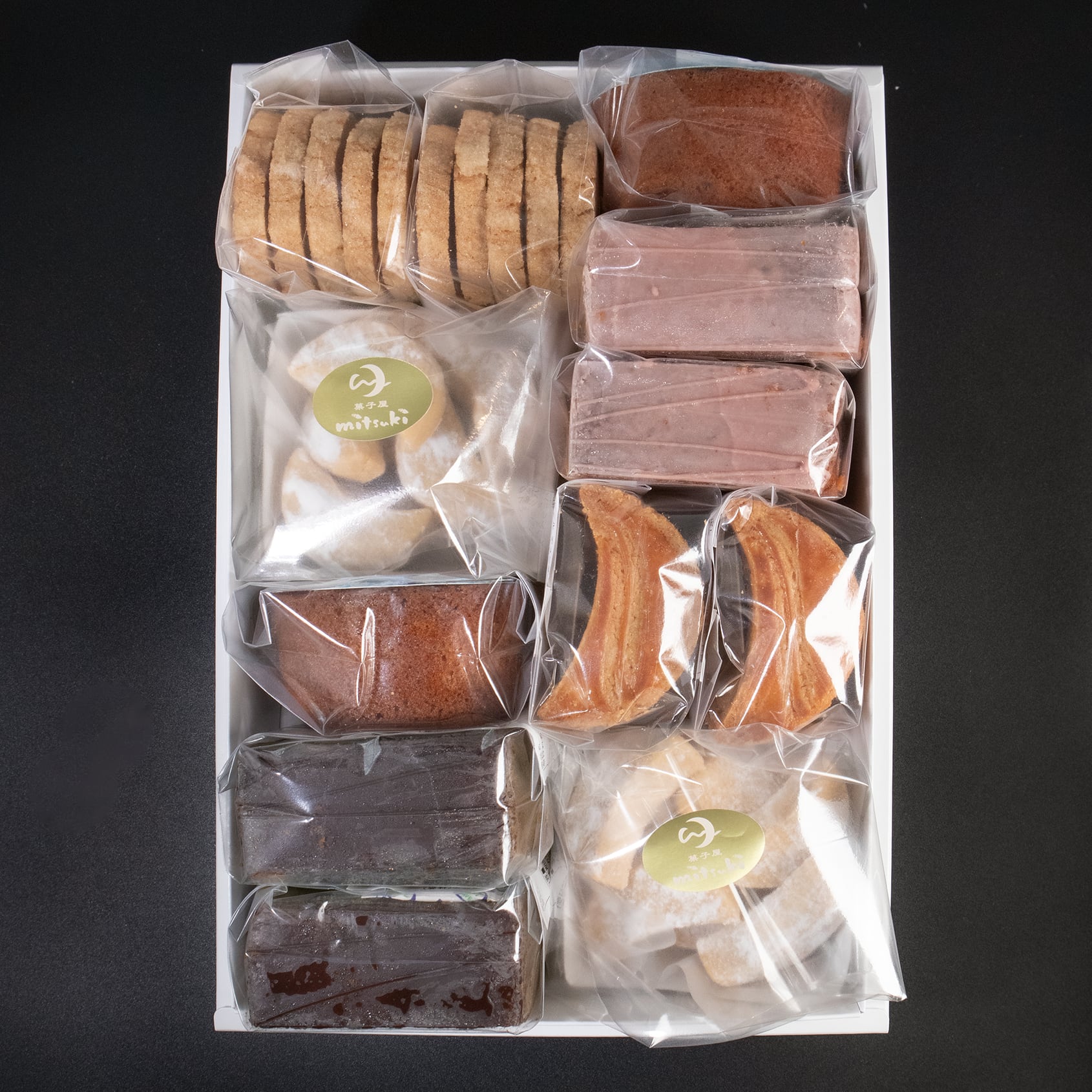 当店人気商品、三日月のブルトンヌ「クレールデュンヌ」と、三日月のホロホロクッキー「リュンヌドネージュ」を詰め合わせました。
