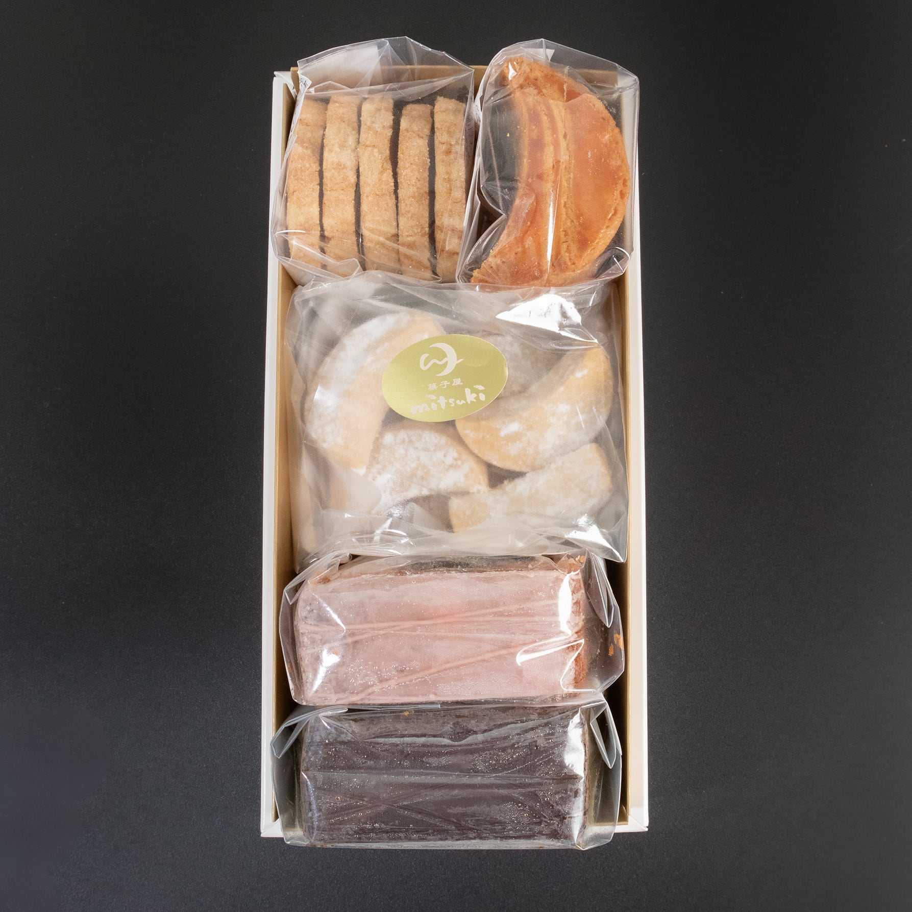 当店人気商品、三日月のブルトンヌ「クレールデュンヌ」と、三日月のホロホロクッキー「リュンヌドネージュ」を詰め合わせました。